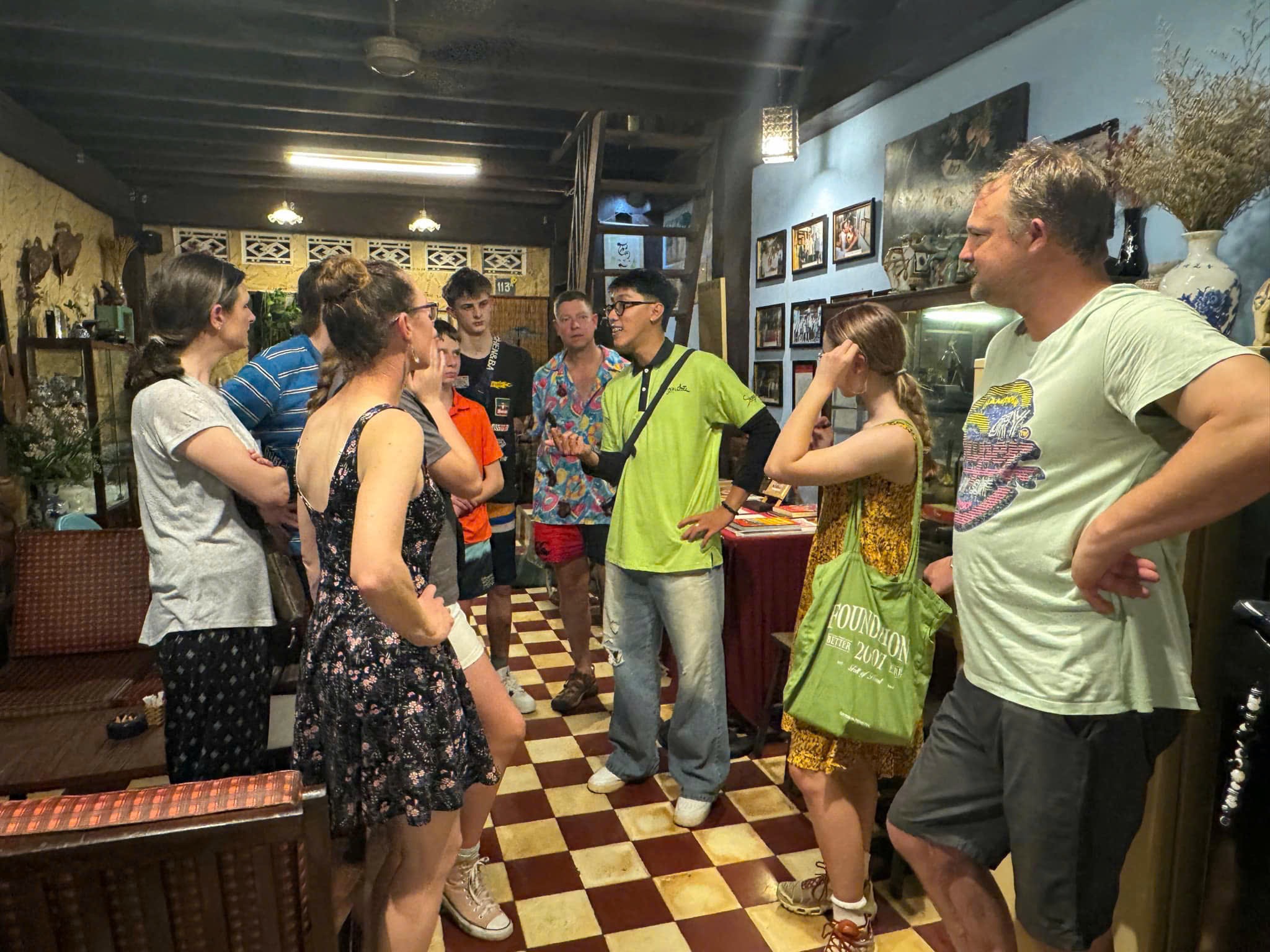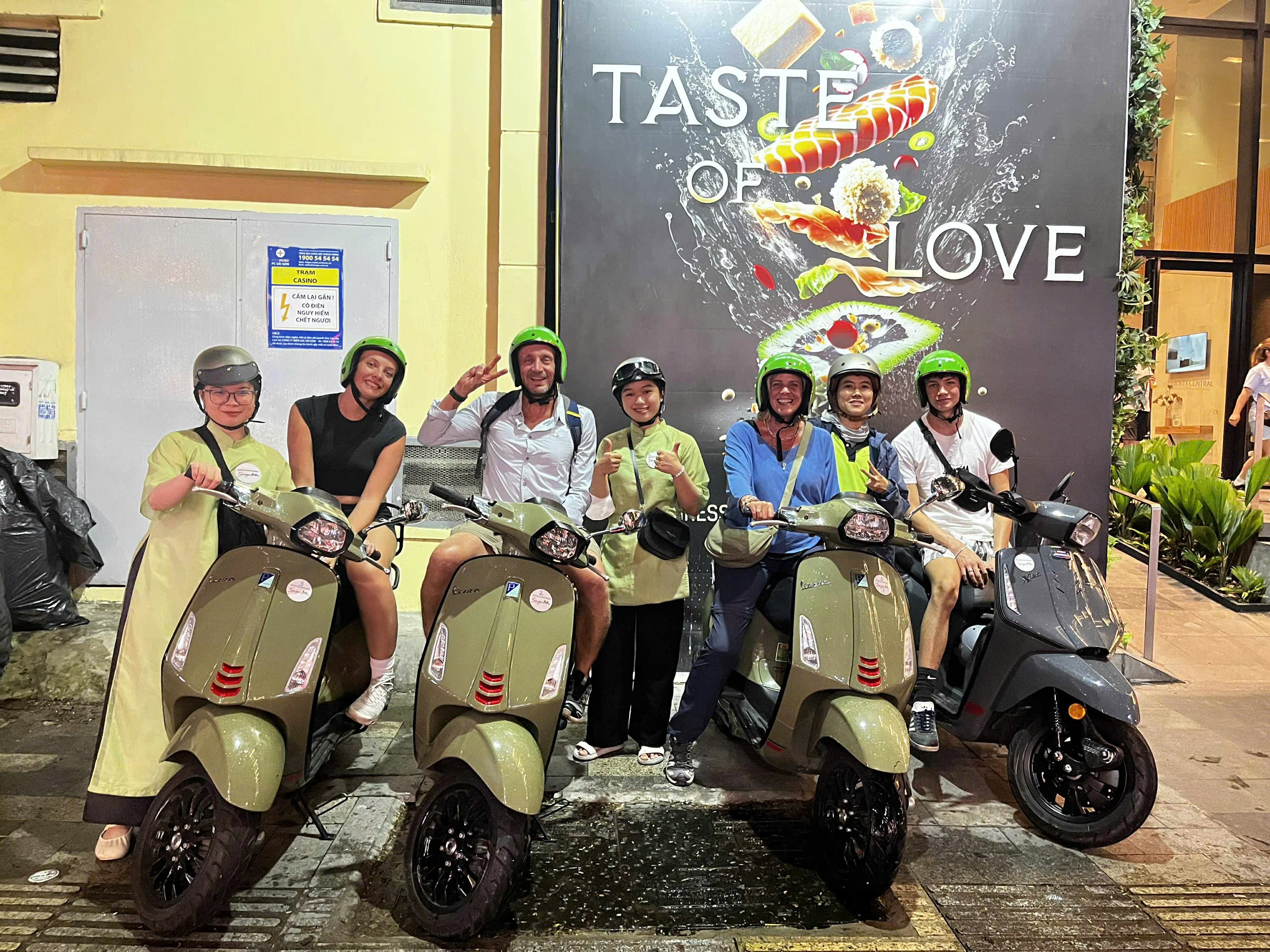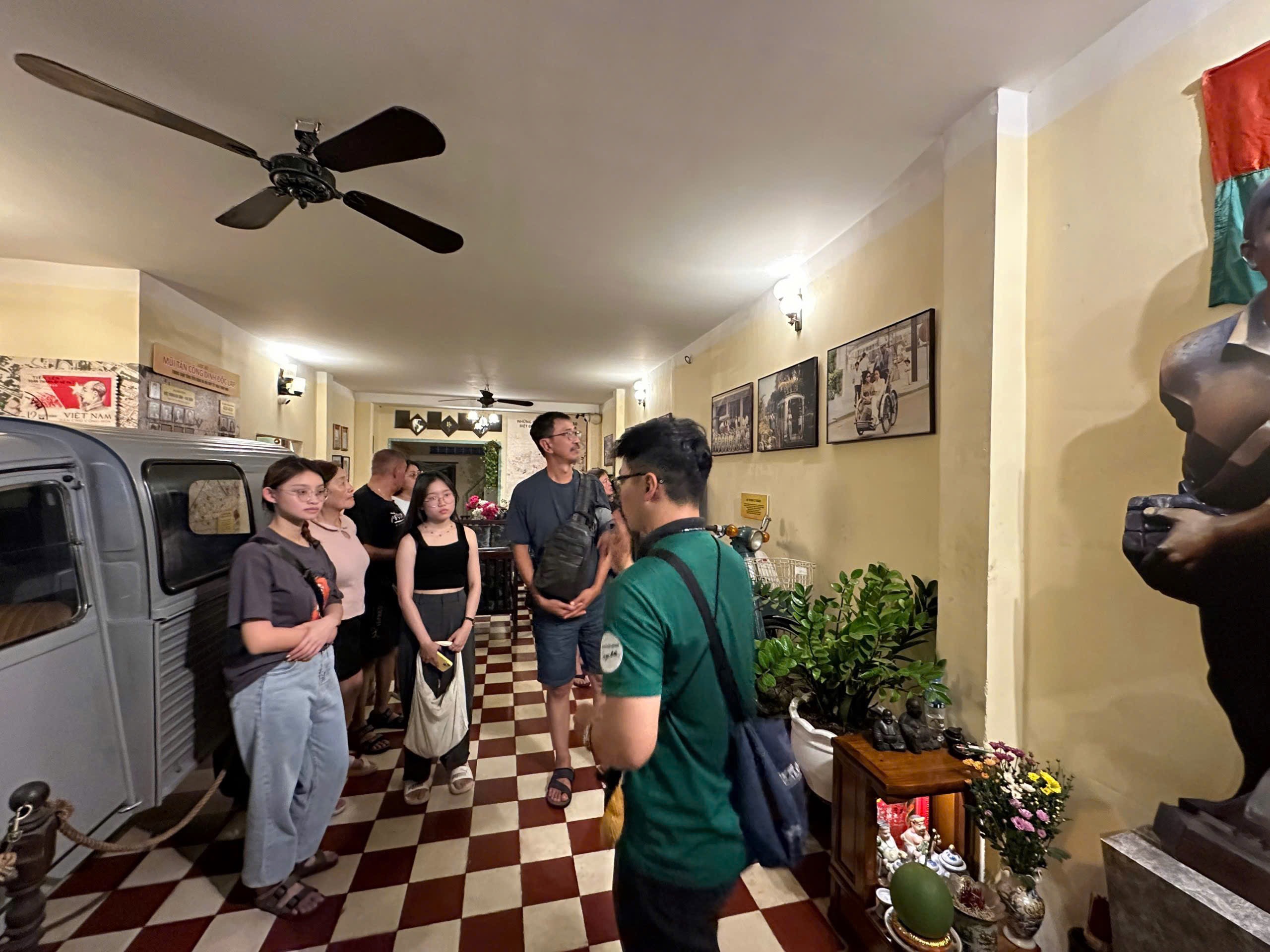 Afterward, we stop at a local café where you can enjoy a cup of coffee and take in the bustling streets while listening to soothing music, allowing you to relax completely. Then, we'll visit the Thien Hau Temple, built in 1760 by the Chinese community to bring their religious beliefs to Vietnam, with materials shipped from China. Today, it's highly regarded by the local Chinese community in District 5. We'll walk along the fish tanks and cross a bridge connecting District 5 and District 8, offering a panoramic view contrasting the high-rise buildings with poorer areas. Moving on to District 7, you'll enjoy the fresh air along the riverbank, where we'll have lunch. We continue to District 4 to explore a floating market where people live, work, and trade on their boats. On our way back to the hotel, we'll take you through a food alley bustling with various Vietnamese street food specialties, a place populated by migrants from different regions. And that concludes our adventure.